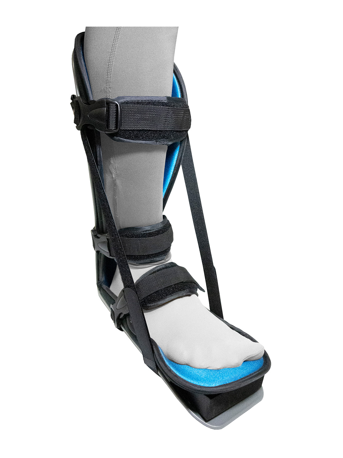 The ISO Preferred Night Ankle Splint with Wedge (AN37x) is a static or dynamic ankle foot orthosis designed for patients to aid in alleviating pain associated with plantar fasciitis and /or lower extremity overuse injuries. The splint provides a gentle overnight stretch and controls movement by positioning and stretching out the fascia, thus preventing the foot from tensing while sleeping. The adjustable, bilateral dorsi-flexion straps and optional toe wedge allow custom levels of stretch to meet the patient’s needs and preferences.