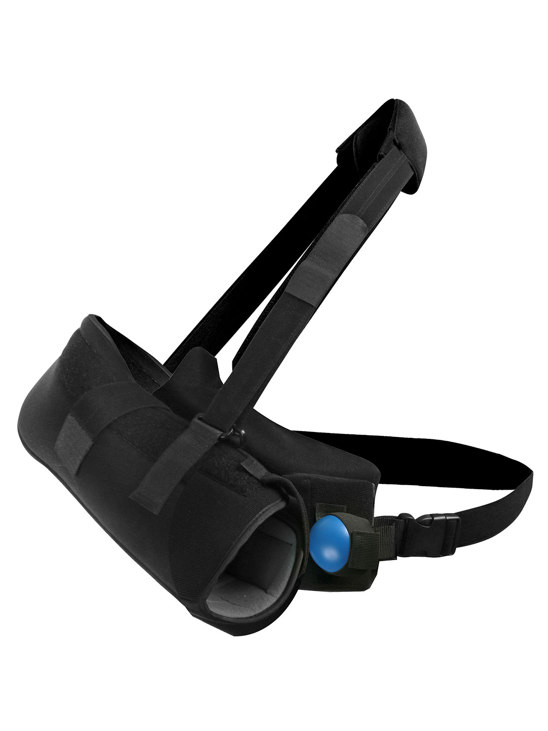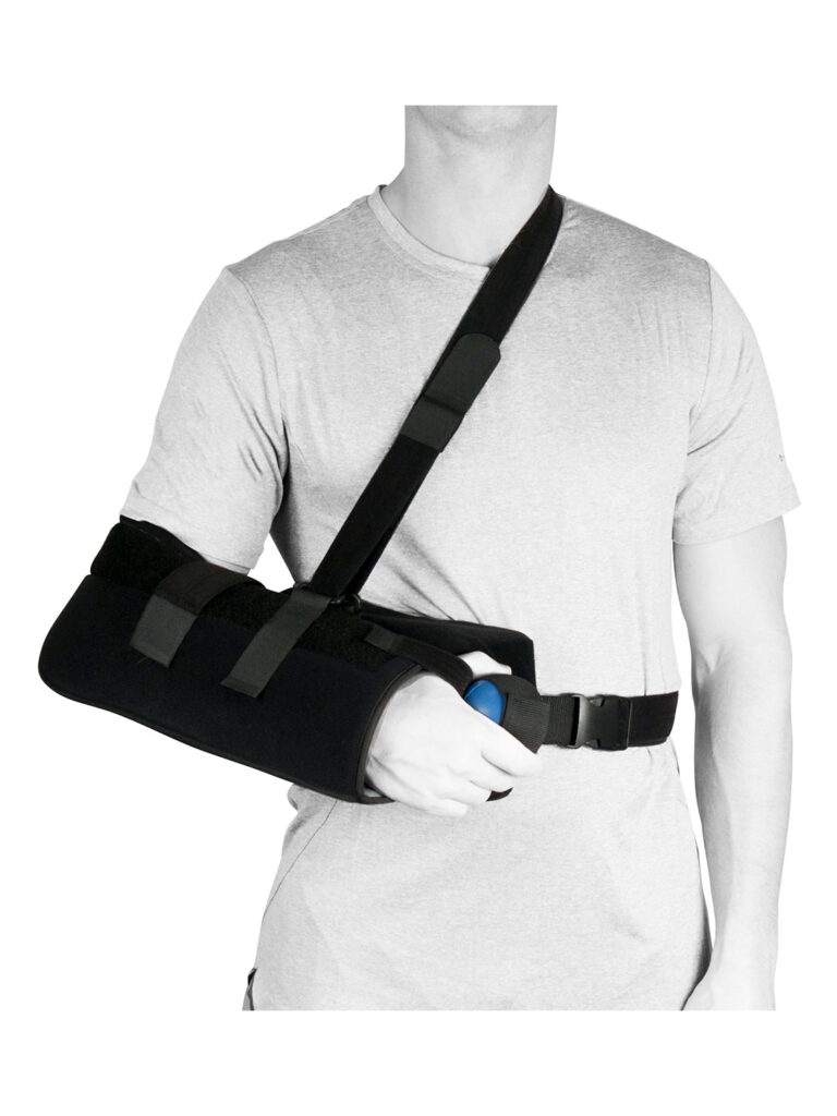 The ISO Preferred Shoulder Sling with Abduction Pillow & Squeeze Ball (SH324-SH327) is designed to provide post-operative and post-trauma immobilization. Canvas type fabric of the ISO shoulder sling orthosis firmly attaches to the abduction pillow for optimum arm and shoulder placement and immobilization. Design supports the needs for post-op, general injuries, rotator cuff injuries, soft tissue repairs, and shoulder instabilities. Shoulder sling and abduction pillow fit either the left or right arm or shoulder with an easily adjustable sling. Attached squeeze ball helps stimulate blood flow while arm and shoulder are firmly supported